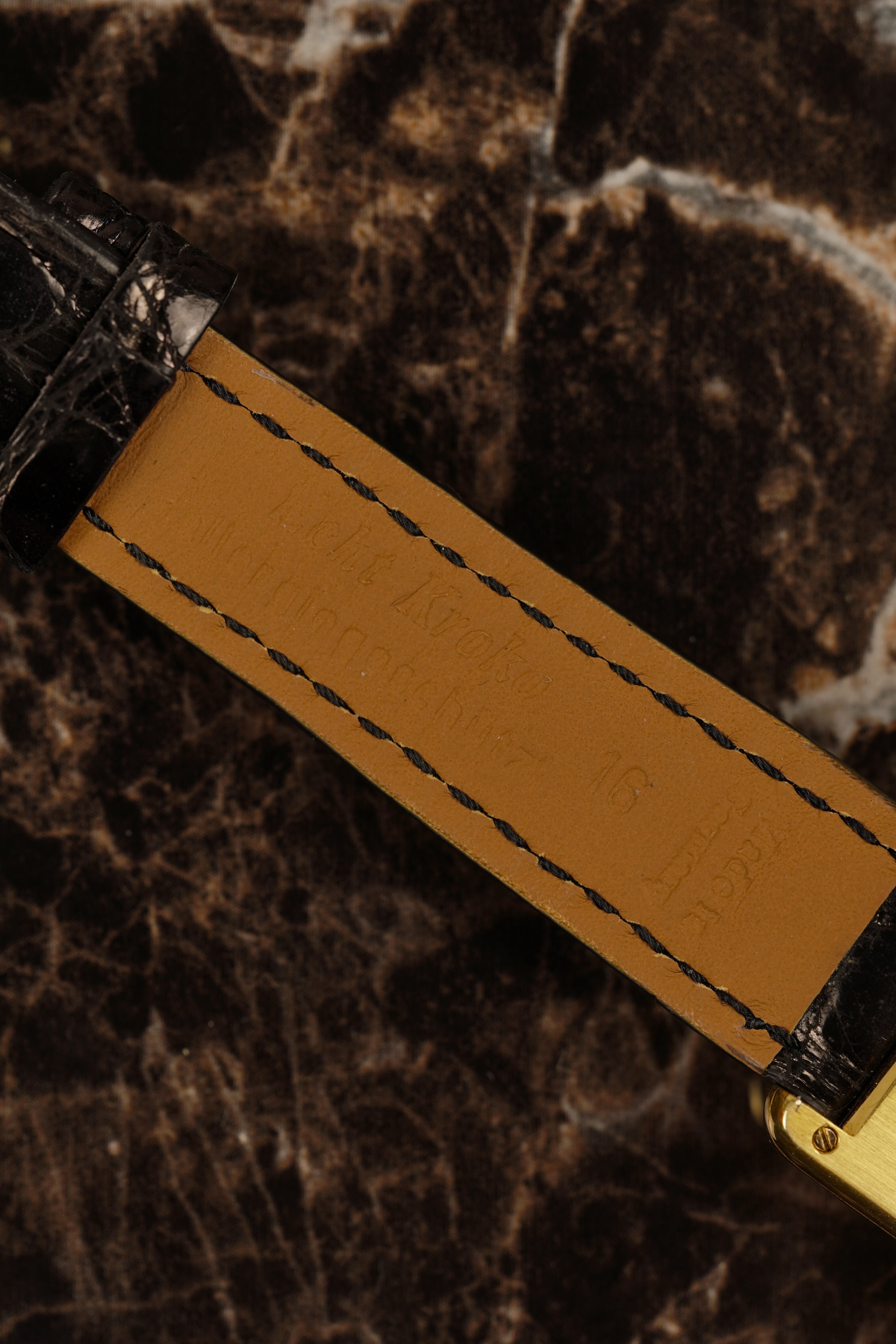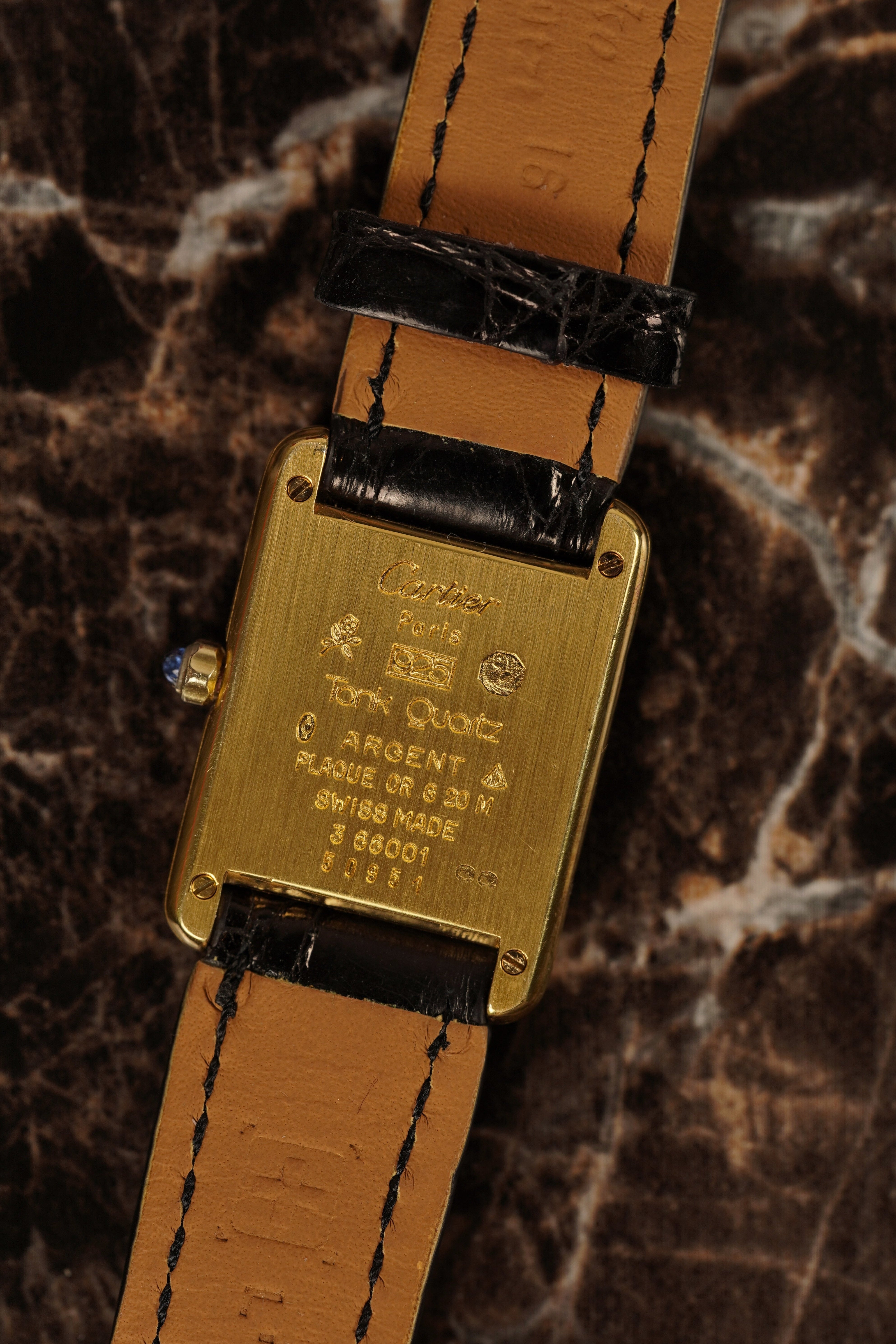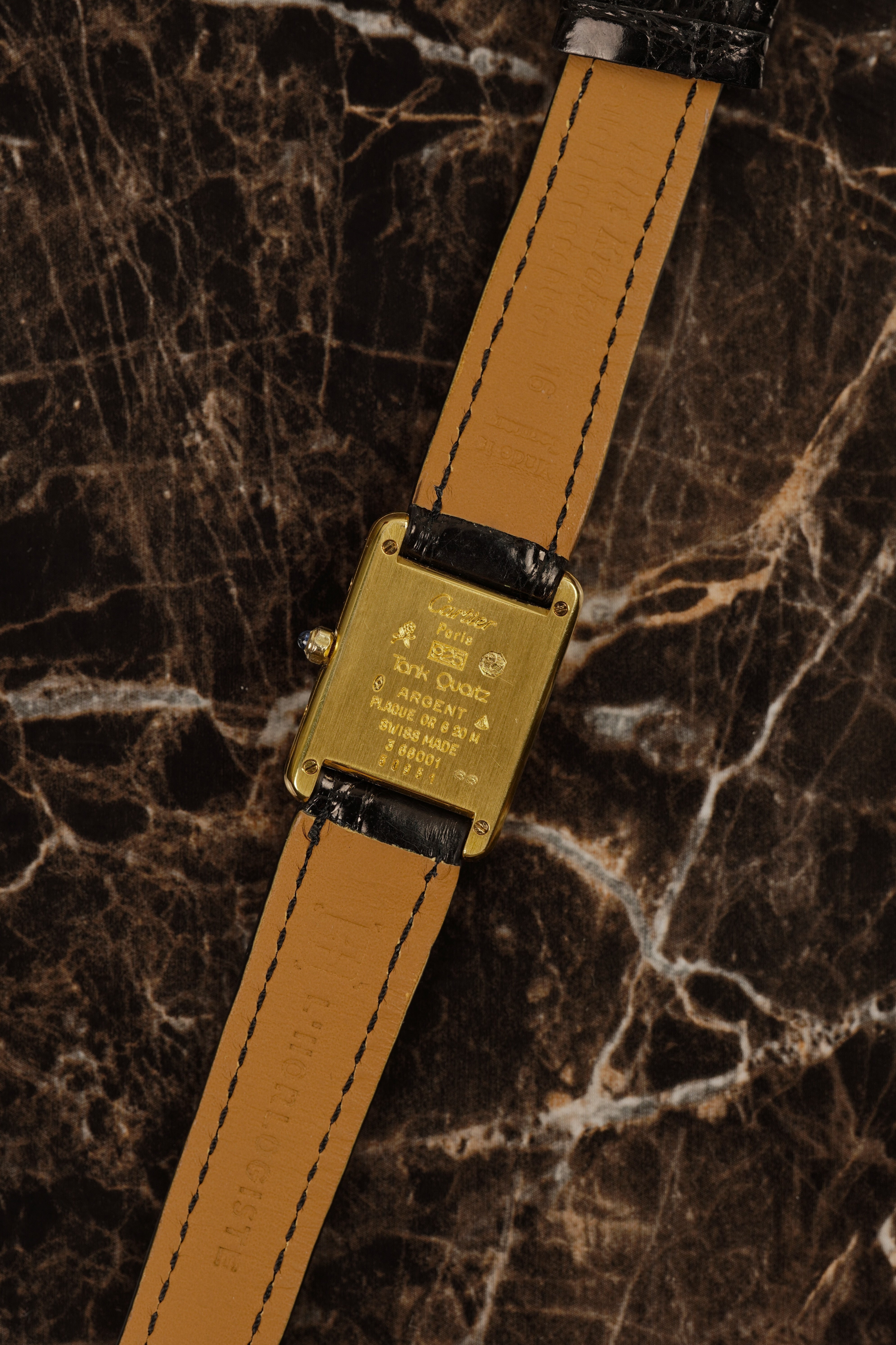 La Cartier Must de Tank référence 366001, lancée dans les années 1980, reprend le design iconique de la Tank créée en 1917 par Louis Cartier. Ce modèle se distingue par son boîtier rectangulaire plaqué or, son cadran clair patiné aux chiffres romains classiques et ses aiguilles bleuies. Animée par un mouvement à quartz fiable et précis, ce garde temps est l'exemple parfait de l’esprit raffiné de la collection Must.