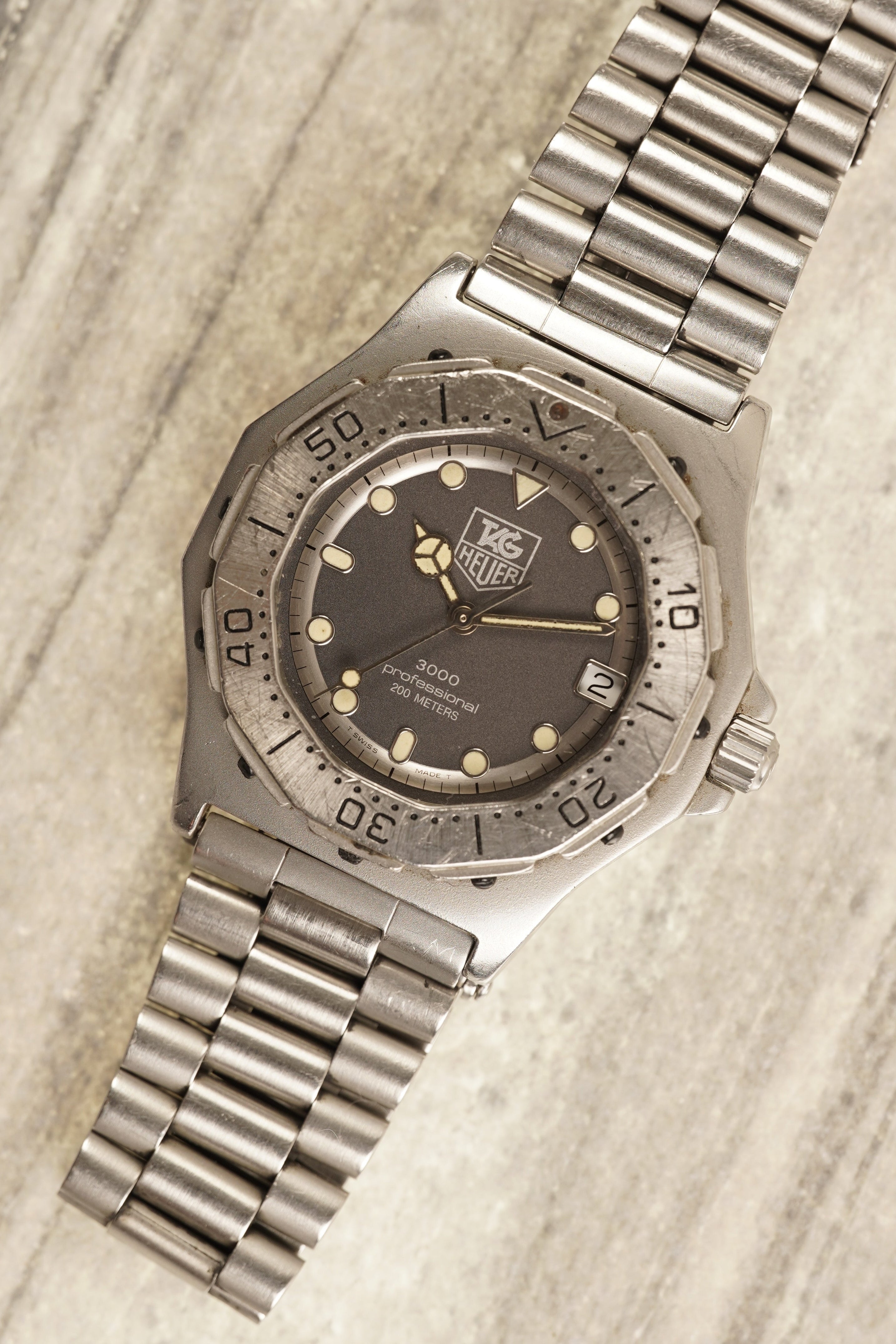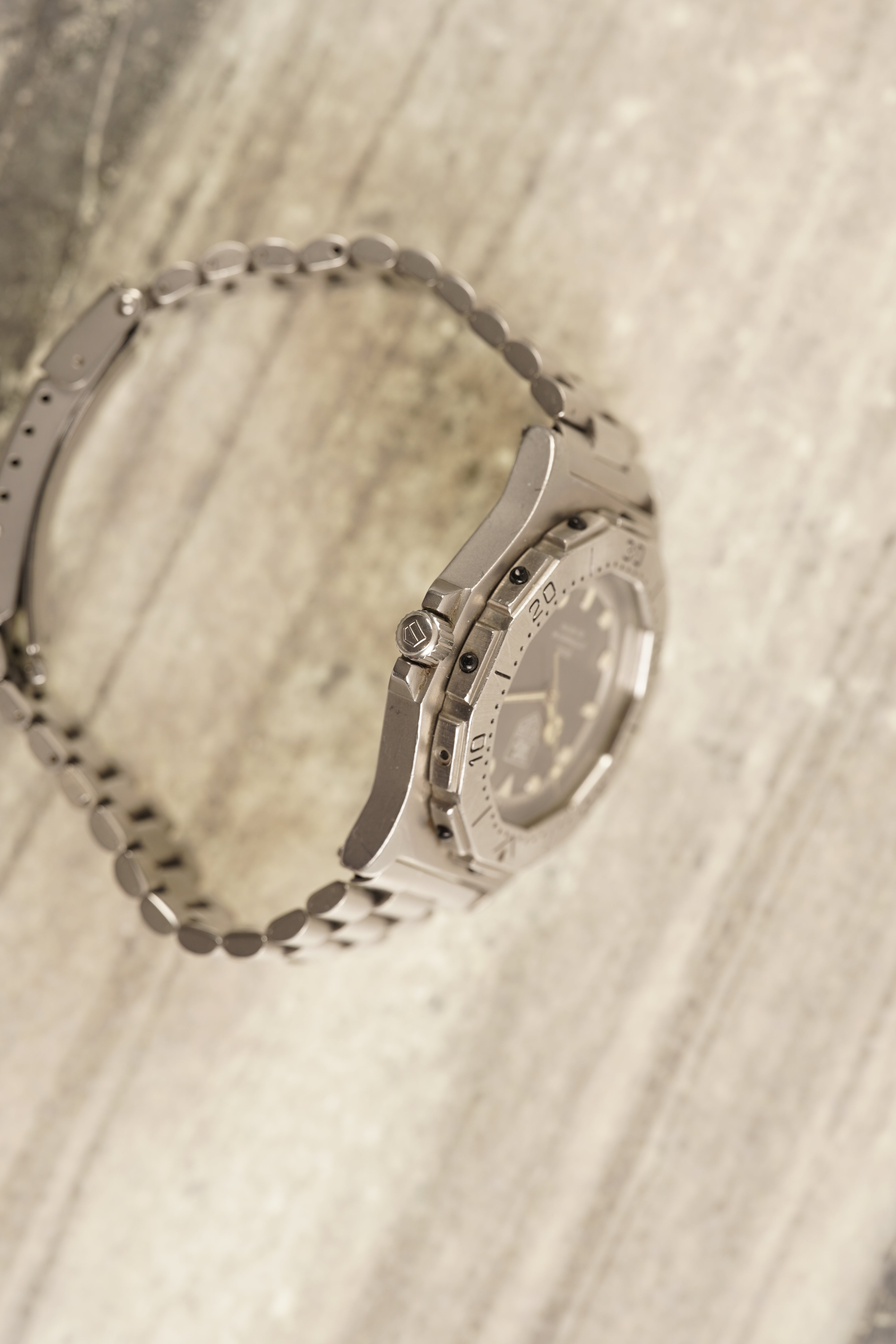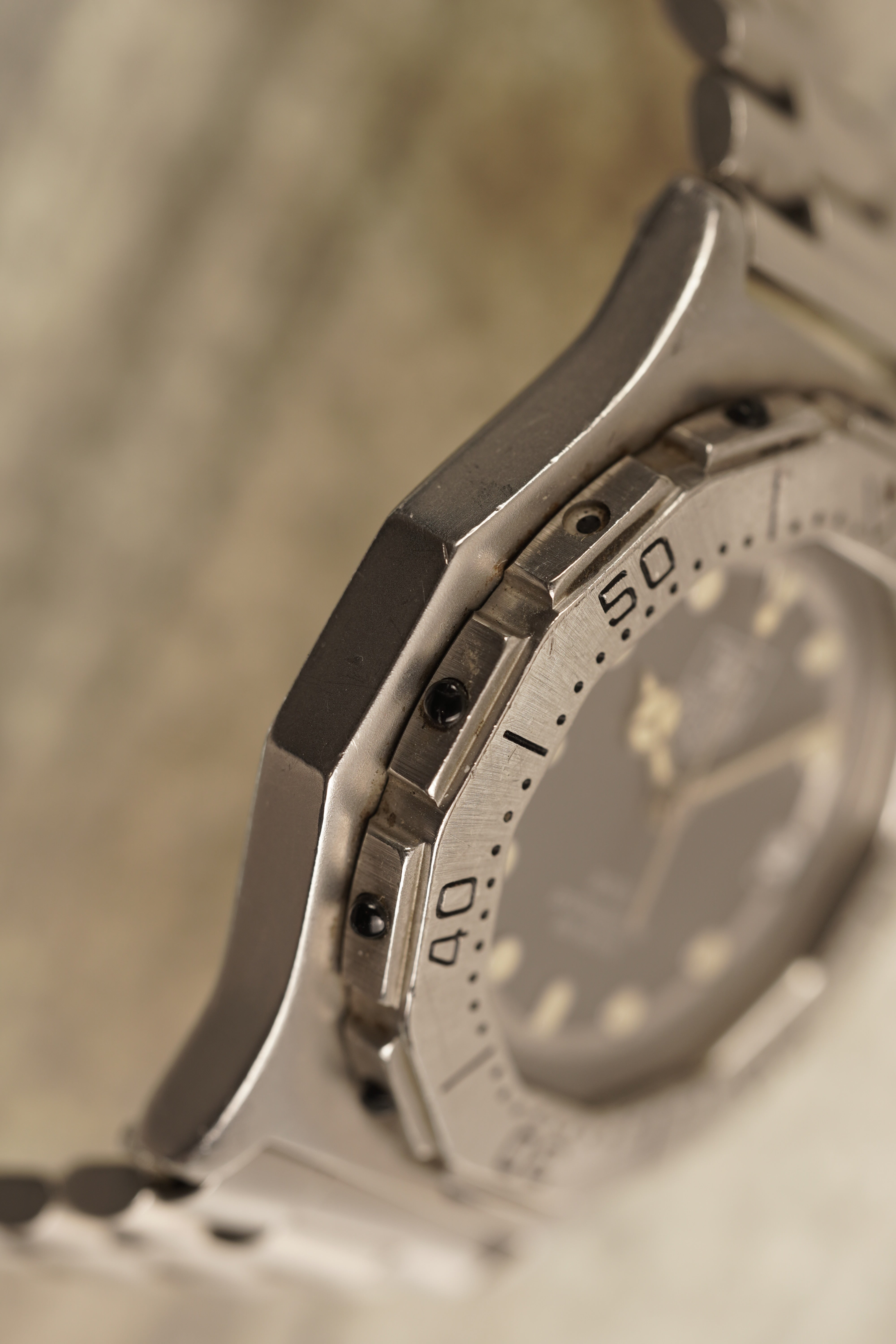 Montre sportive emblématique des années 80–90, la TAG Heuer 3000 Professional se distingue par son design angulaire, sa construction robuste et son esthétique immédiatement reconnaissable. Pensée pour un usage quotidien aussi bien que pour la plongée, elle combine précision et sobriété.